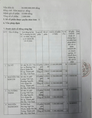 - Vốn điều lệ: 50.000.000.000 VNĐ (năm mươi tỷ đồng).